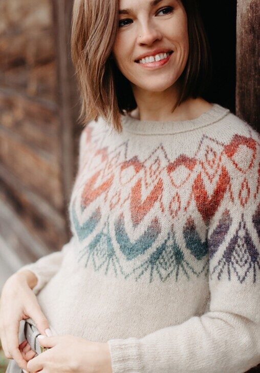 To knit this sweater, you will need 2-3 skeins of each colour of Pāce yarn and the knitting pattern.